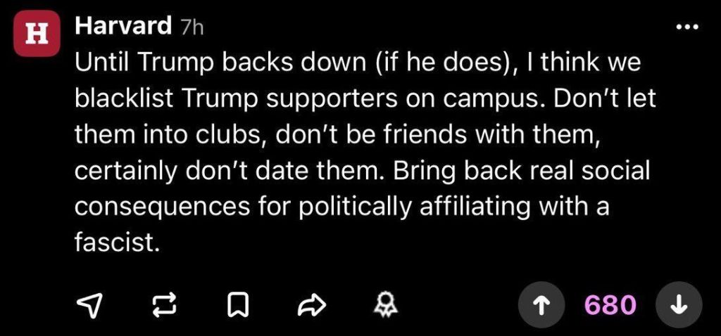 Yes, it’s crucial to withdraw from Trump supporters the welcoming environment they have enjoyed on US campuses so far. Only until Trump backs down from whatevs the new grievance is, of course. After that, the friendly, open-minded interactions can resume. MAGA hats will fill classrooms on par with BLM tees all over again.