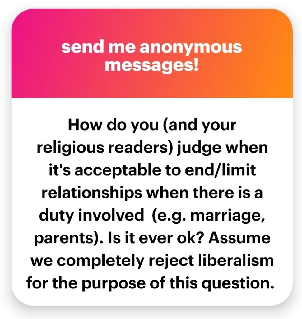 The approach I propose is better because it’s not reactive. You don’t sit there, waiting for something to happen that will prompt you to end the relationship. There’s nothing that can end the relationship like there’s nothing that dan end your relationship with your forever head or your forever left shoulder. The forever head can have a massive headache and the forever shoulder can get annoyingly arthritic. But they are there for good. You can similarly have people in your life who are there for good. These will be very, very few. Isn’t it great, though, to have people like that?