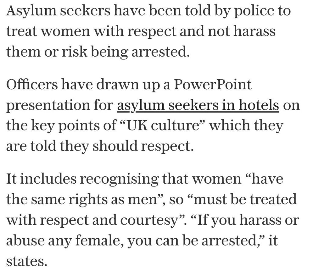 Talking about clinical morons, police in Great Britain is showing presentations to migrants housed in so-called migrant hotels. There have been numerous reports that it’s impossible to find cleaners for the hotels that were turned over to housing migrants because cleaners constantly get raped: