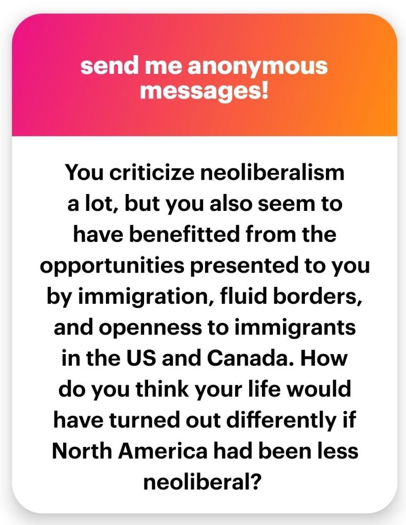 3 thoughts on “Q&A: How I Benefit from Neoliberalism