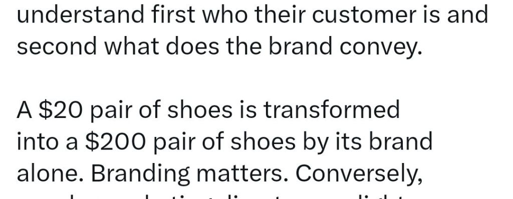 This is not true and a cope. The difference between expensive and cheap shoes isn’t branding but the level of comfort, durability, and lack of pain.