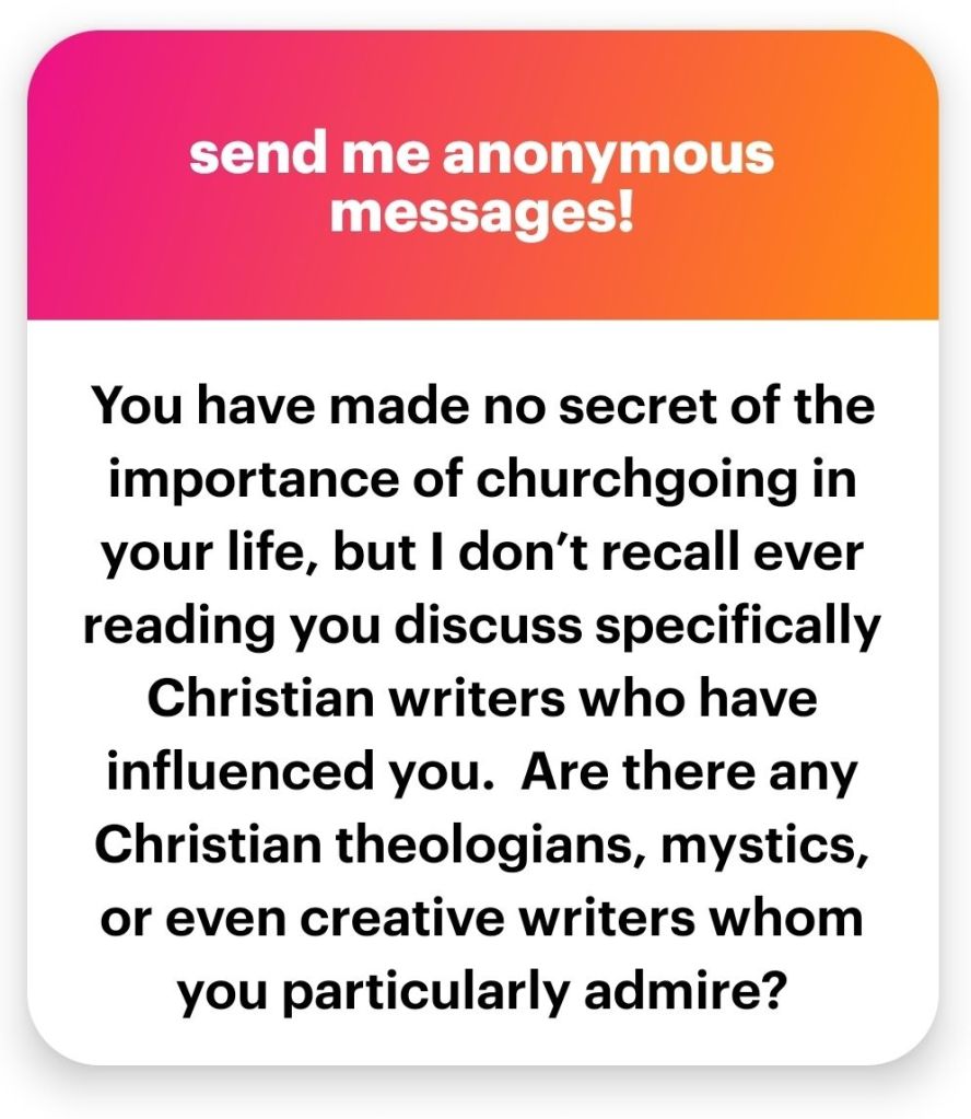 I like CS Lewis’s writing – The Great Divorce, the screwtape Letters, the Four Loves and others.