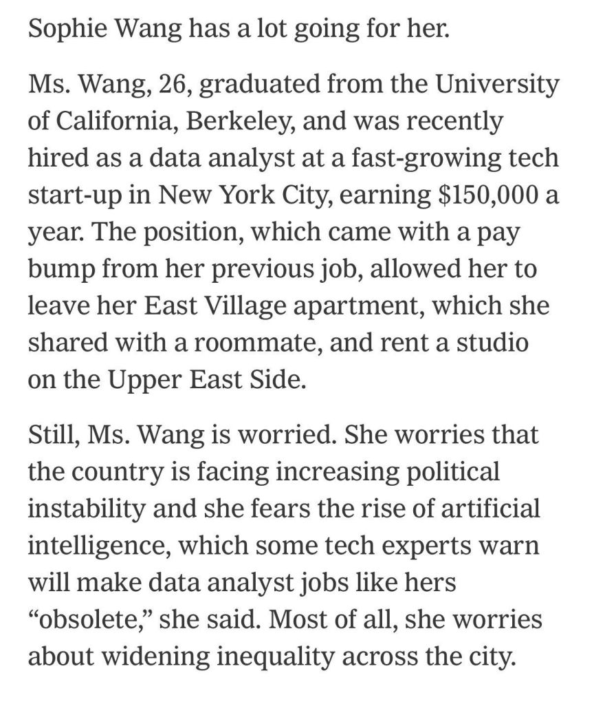 NYTimes published a long article about the people who are eager to vote for Mamdani. They are all young, highly-paid, successful in diversity Olympics, and very pouty.