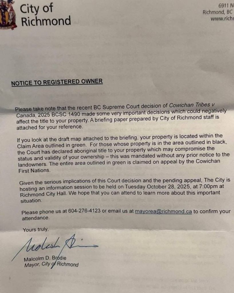 The Canadian province of British Columbia is informing home owners that they don’t have the right to their homes because the land was recently adjudicated as belonging to a tribe: