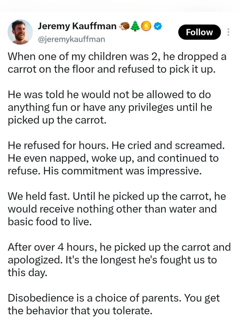Or do you think organic brain damage? Because if two adults need 4 hours to get a toddler to pick up a carrot, the only excuse they have is if they are severely retarded. Or sadists.