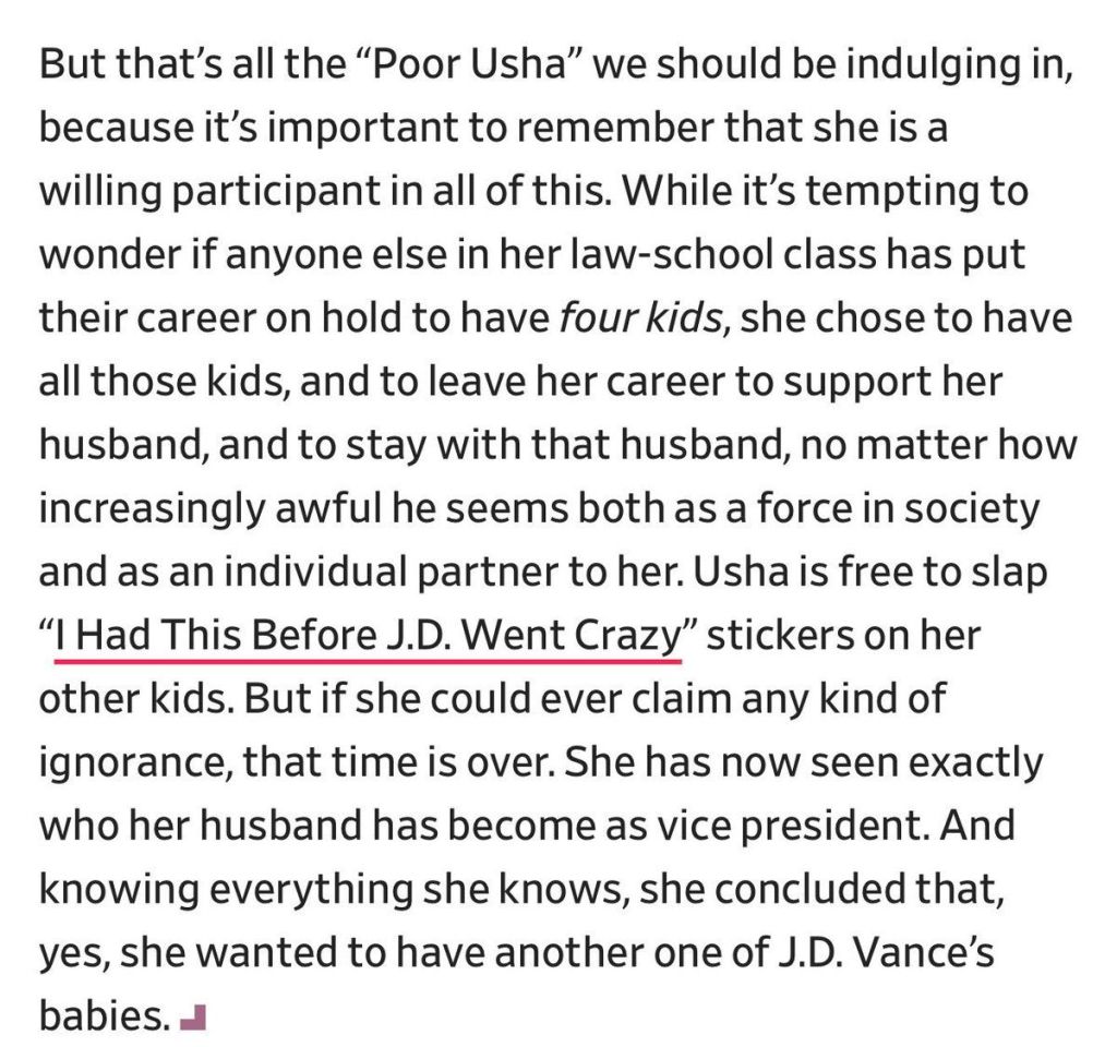 I don’t like Usha but I was extremely happy for her when her pregnancy was announced. As I’m happy when anybody’s pregnancy is announced but I’ll confess that the feeling is especially acute when it’s an older mom.
