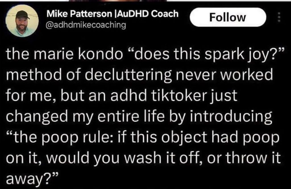 By the way, a consumerist personality feels the greatest joy not at the point of buying but at the point of throwing away. Because throwing away frees up space for more buying. Decluttering is the most consumerist activity out there.
