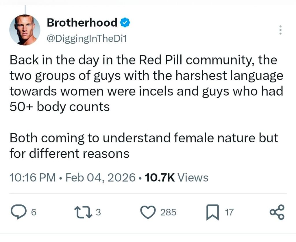 These guys with body counts treat women like toilets, and women treat them like toilets in return. Then both sides pout at each other because everybody wants to feel extremely special but can’t be assed to be decent to other people.