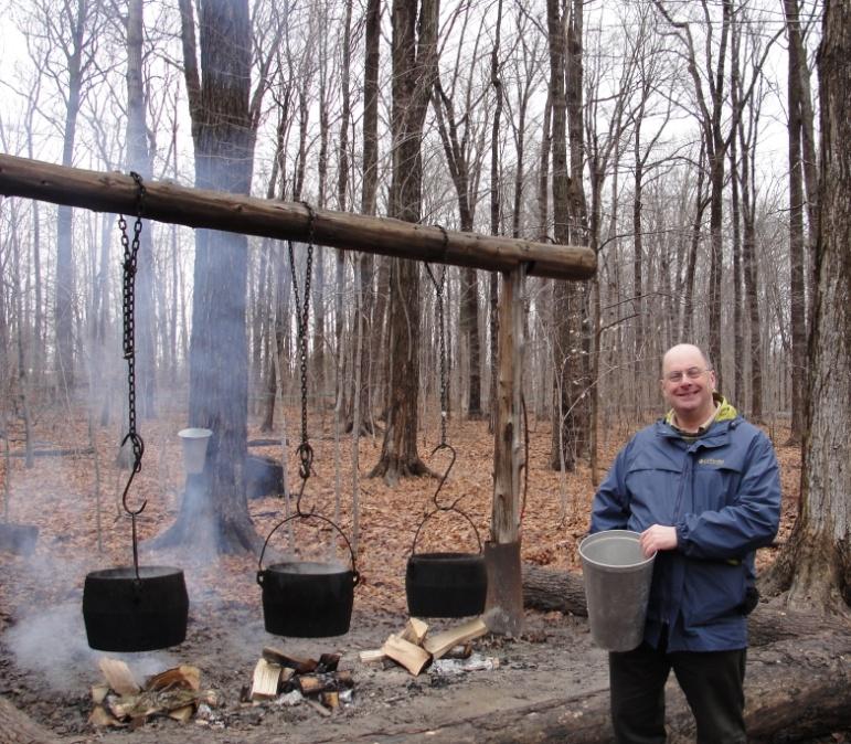 You’ll need: a map, 20 – 40 tree taps (sprules), 20 – 40 metal buckets with lids, drill, 7/16 “drill bit, hammer, 3 foot cloth measuring tape, two helpers, a cord of wood, three large iron kettles, hooks and iron chains, saw, axe, beer, thermometer, brix refractometer, filter sieve, oven mitts, tent, sleeping bags, shotgun, lamps, more beer and a variety of glass bottles with lids. One item which you won’t recognise is a tree tap or sprule.