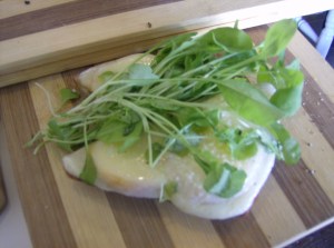 Boiled eggs, Laughing Cow cheese wedges (but only the kind you see at this link. I tried other kinds and the salad sucks as a result), and crushed garlic. That’s it. The radishes are just for decoration.