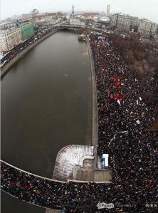 If anything, the Russian protests follow in the footsteps of the Orange tradition started by Ukraine several years ago. Of course, the fiercely anti-Ukrainian Russians will never recognize this but we’ve seen similar protests take place in Ukraine in 2004-5 when the results of the elections were falsified and people took to the streets to reclaim their right to vote for whomever they want.