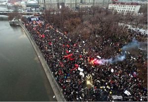 – The answer is no. Absolutely not. And the tendency to explain things happening in other countries through what goes on in one’s own is never a productive strategy. The protests in Russia have nothing to do with the economy. I have not seen or heard of a single economic demand coming from the protesters in any of the sources in Russia I have been following during the recent events. The people who protest in Russia are members of the middle and the upper-middle class. One of their leaders is a billionaire who became famous for proposing 12-hour work days for his employees. The other leaders are very rich people, too. These are folks who have made enough money not to be seduced by the small amounts Putin pays to his fake supporters. Most of the protesters are comfortable enough financially to afford to have a civic consciousness.